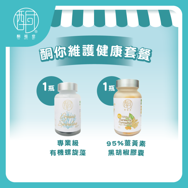 酮你維護健康套餐(有機螺旋藻/ 9 5%薑黃素黑胡椒膠囊各1瓶)