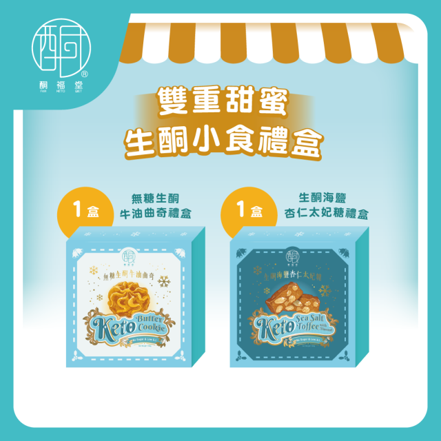 雙重甜蜜小食禮盒(無糖生酮牛油曲奇禮盒/生酮海鹽杏仁太妃糖禮盒各1盒)