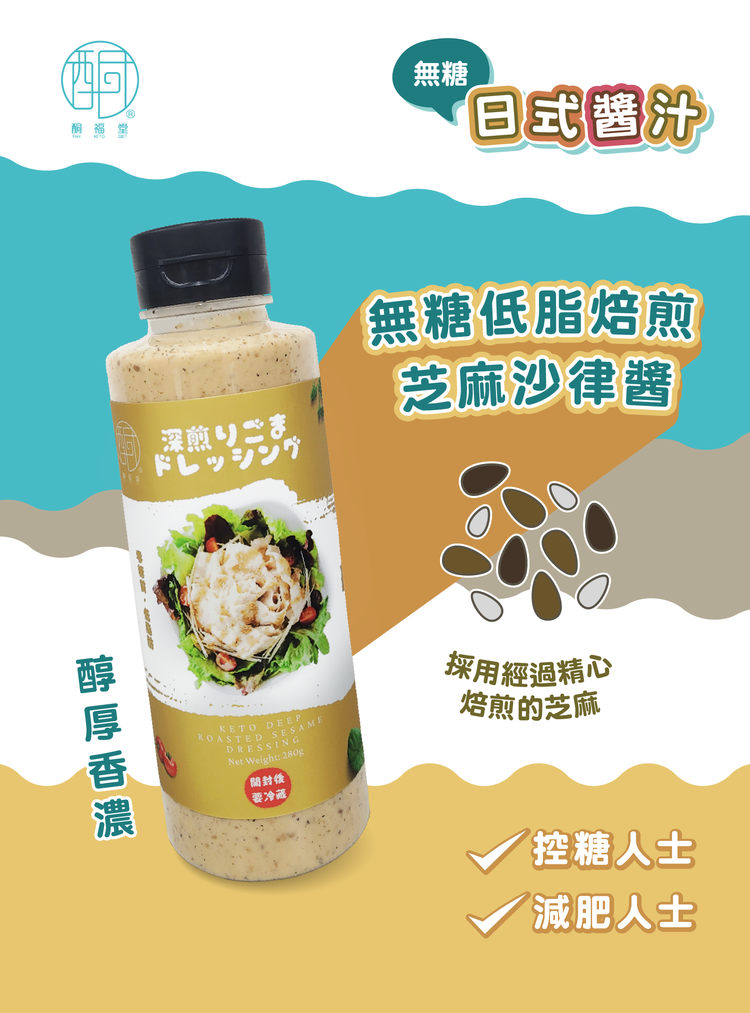 生酮無糖低脂焙煎芝麻醬,為您的健康飲食添上一份醇厚香濃的美味享受!這款芝麻醬採用經過精心焙煎的芝麻,融合天然的香氣與濃郁口感,與傳統芝麻醬相比,特別使用了無糖配方,讓您在享受美味的同時無須擔心糖分過多。低脂配方設計,保持豐富口感的同時,減少油脂攝入,適合追求健康、控制體重或糖分的您。這款焙煎芝麻醬用途多樣,無論用於拌麵、淋在蔬菜、塗抹吐司或作為沙拉醬,都能帶來豐厚而純粹的芝麻香味。其濃郁卻不膩的口感,讓每一份料理都更加升級。