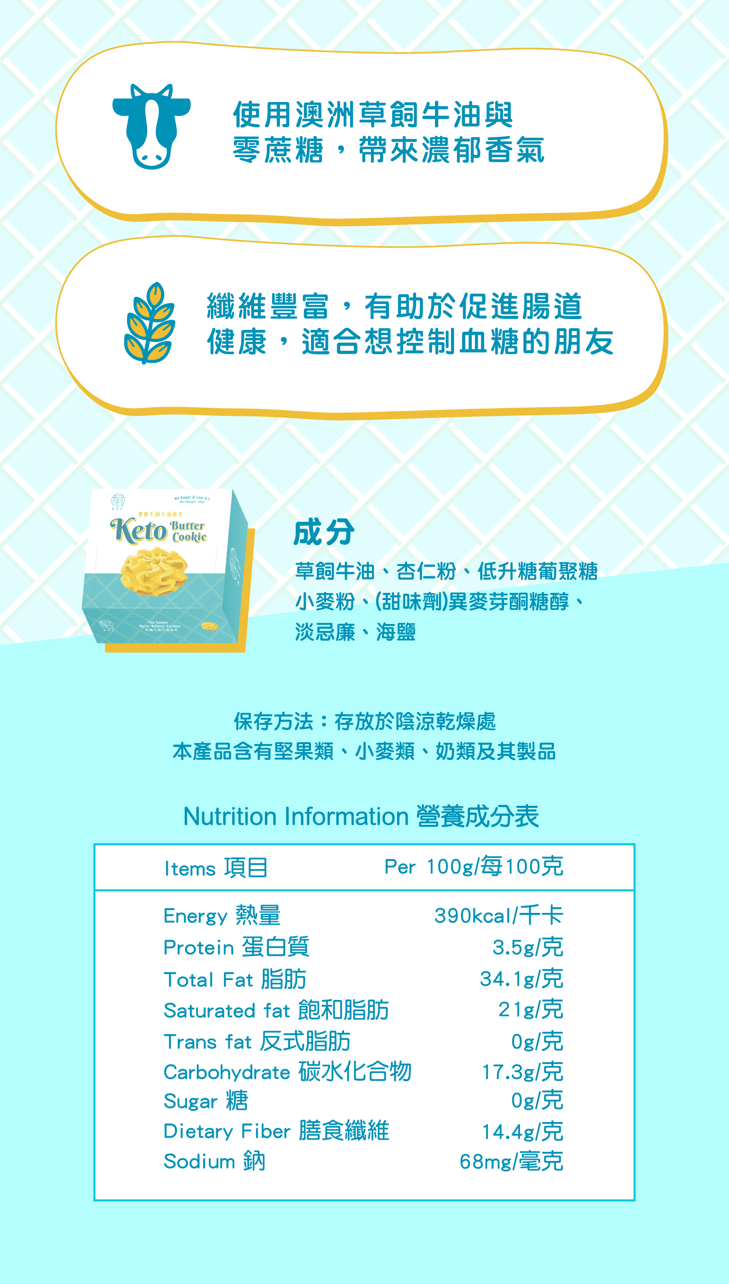 而家仲加入咗不超過15%低升糖葡聚糖小麥粉,令到本身無法做到鬆脆嘅生酮曲奇,成功做到接近傳統丹麥牛油曲奇咁軟織,每片淨碳水化合物淨係1.73克!😍