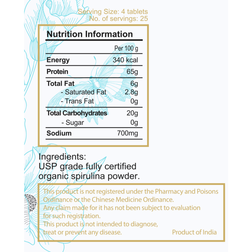 成 份 :1 0 0 % 有 機 螺 旋 藻 粉( 不 含 粘 合 劑 及 賦 形 劑 )
